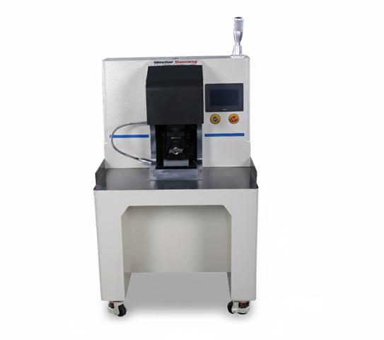 Semi-automatic, foot-operated machine for crimping reeled terminals. Microprocessor-controlled, durable steel construction, low maintenance, and user-friendly soft-touch control panel.